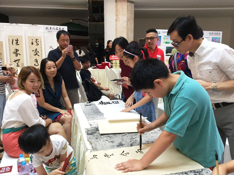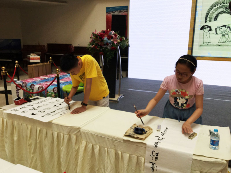 作为本次活动的艺术顾问、大无限艺术学校校长吴寒松在致词中说:作为一名长期爱好和学习中国书法的孩子来说,能用自己的学习成果奉献社会,为贫困地区学校添置书画工具和材料出点力,是件功德善举,学员和家长冒着高温赶来参加活动,本身就说明重视的程度。作为学校能够在传承文化艺术教学过程中,参加这样的公益活动并为此出力,表示欣慰和高兴。