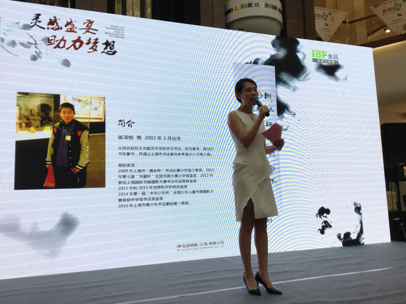 2016年8月6日,大无限艺术学校与IBF全品地板(上海)有限公司在红星美凯龙联合举办了书画公益拍卖,总共筹得善款34830元,支持贫困地区学校采购书画学习材料和工具。