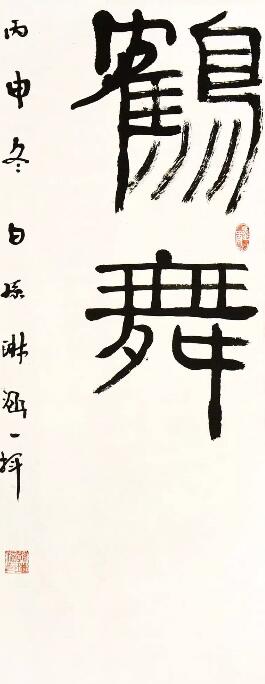 ■ 点评:鹤舞两字用笔爽快,布局巧妙,在字法上如能注意疏密变化,整体会显得更有趣味性。落款小字也需进一步提高。