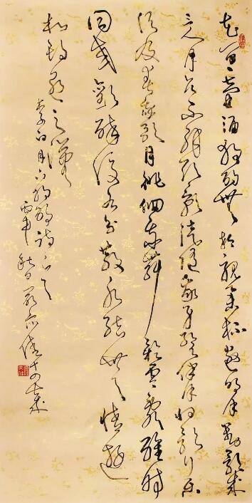 ■ 点评:在临习《怀素自叙帖》的基础上,初步尝试创作有较高难度。整件作品而论,整体感较弱。如果字形大小变化、左右挪位参差等再强烈些,会更好。作品结尾,稍欠力感,应该是笔画粗细、轻重少变化所至。