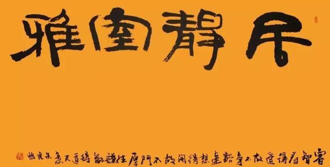■ 点评:四尺整纸书写四个大字,形式上大开大合,可见对空间的把握度不凡,四字章法如同印章,疏密得当,加之以较为朴实的汉碑意趣,自有一番风味。
