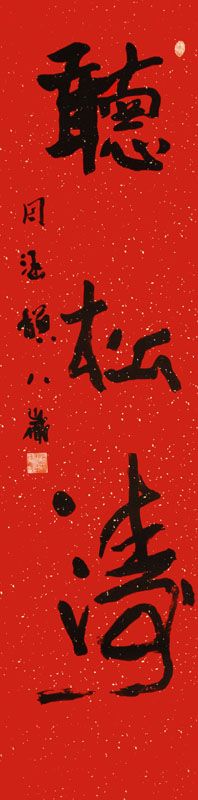 ■ 初习行书得气最难,此"聽松濤"三字笔墨滋润,结体大方又能一气呵成,非常难得。希望在今后的学习中,多关注字形结构的拿捏,以及落款、盖印的方法学习。