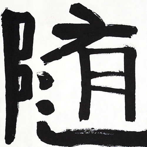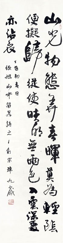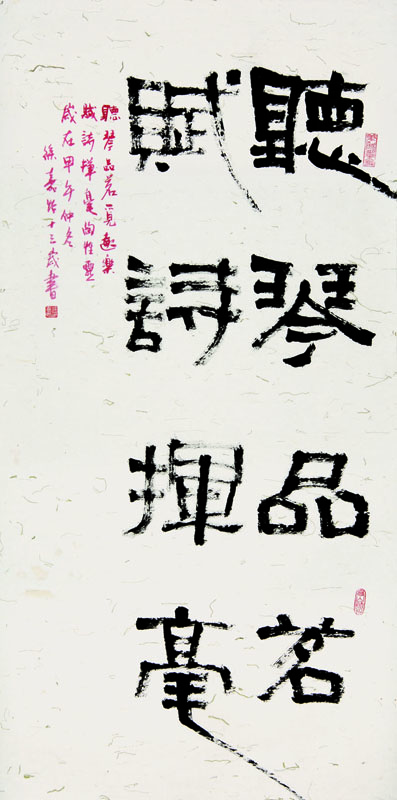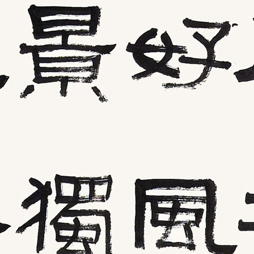 ■ 首次尝试在四尺对开纸内写一首完整的诗词,具有隶书古朴的用笔,干湿分明。但是唯独缺少了胆量,字与字之间少了连贯呼应。