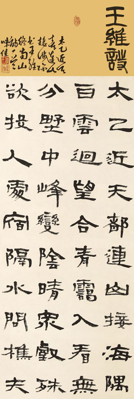 ■ 这是一件颇有设计意识的隶书作品。章法安排、结体设计、用笔状态、线条质量等都已经比较成熟,书写也较为老练。整件作品落款部分中草书的安排稍有欠缺,隶书的古朴与其并不很协调,如果能够写这些草书的时候多一份“拙味”会融合的更好。