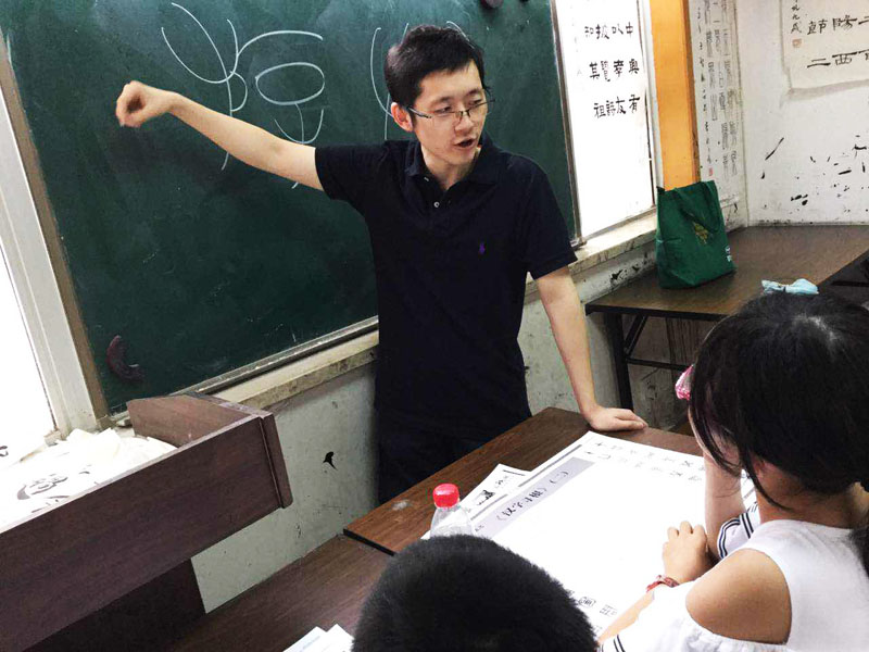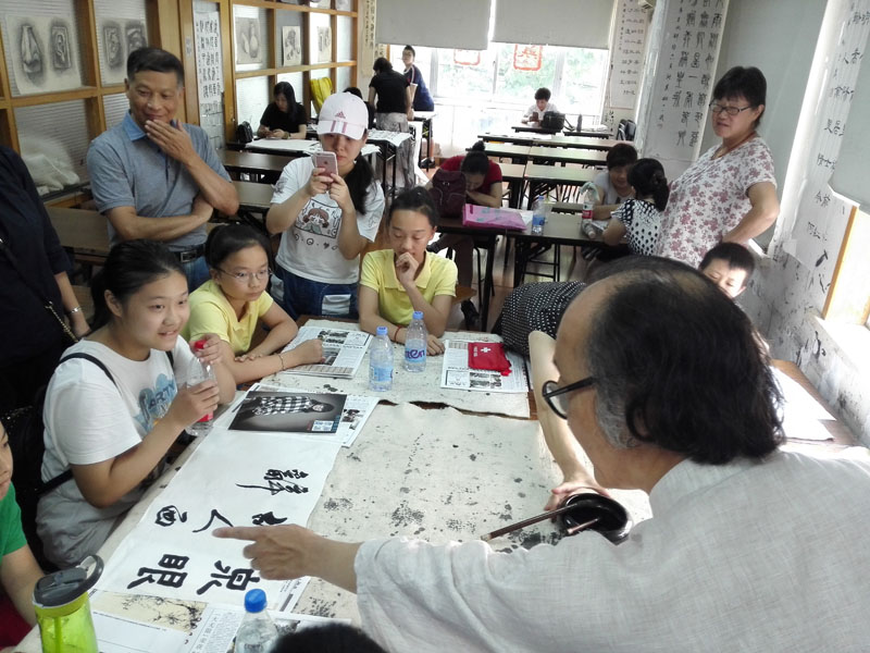 前来参加体验活动的所有青少年都有机会拿起毛笔体验了一把汉字书写的乐趣。大无限艺术学校校长吴寒松为每位体验的青少年耐心辅导,纠正握笔的姿势和书写汉字的技巧。使每一位体验者深受启发。