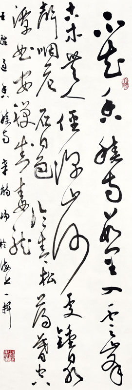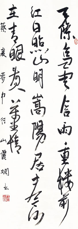 ■ 该幅作品完整度很高,同时也是一幅很有张力的作品,在字形结构方面已经有不少创作的趣味性。只是在墨色的变化上尚有欠缺,枯笔可以适当增加一点,线条的变化性也可以再增加一些。