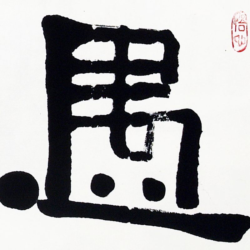 ■ 首次写创作,胆量很大,线条利落,如再增加一些干枯的线条,写大字的过程中增加灵动性会更好。