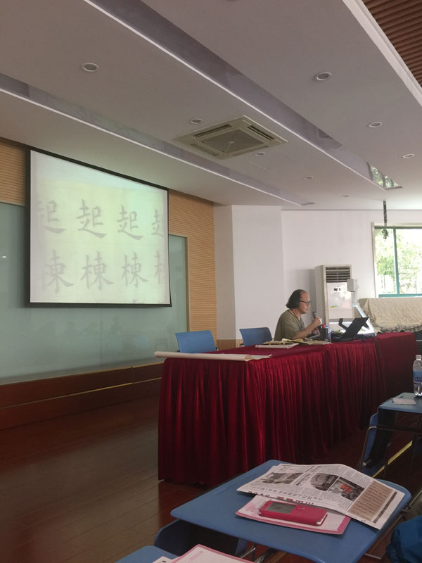 8月29日下午,大无限艺术学校为徐汇区樱花园小学的全体教师作了一次题为“汉字的起源与汉字书法”的专题讲座。徐汇区樱花园小学,是上海市教委认定的“书法特色小学”之一,长期以来,该校重视书法教学,还非常注重全体师资的书写水平,倡导教师学习书法,已多次邀请“大无限”到校为教师培训,收到了较明显的效果。近年来,一些教师的软笔、硬笔书写水平都有较大提高。