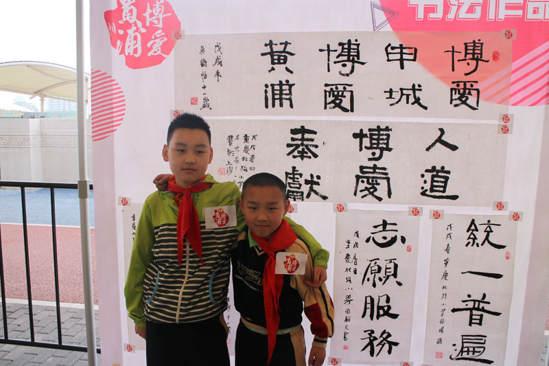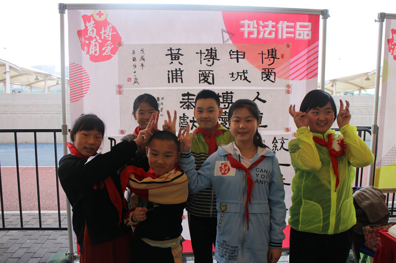 就读于黄浦区重庆北路小学的大无限艺术学校石宏亮、吴诗怡、孙琳涵、金佳彬、何瑾洁、周毅凡六位学员受邀当场挥毫。活动中,黄浦区副区长李原、黄浦区红十字会党组书记、常务副会长王春玲等领导来到活动现场,观看学员挥毫。