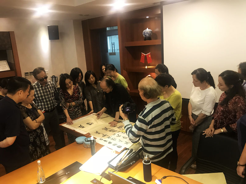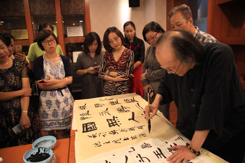 讲座中,吴寒松不仅为大家讲解了汉字造字的根源,还为大家介绍中国书法各体特点,并浅入深出地用自己的创作实例,谈了学习书法的途径和方法。