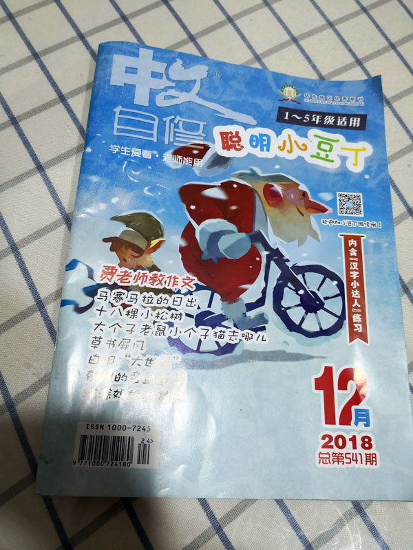 薛倩慧大字书法作品“山峰”入选并刊登在2018年12月的“中文自修”杂志中。