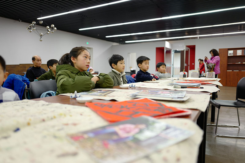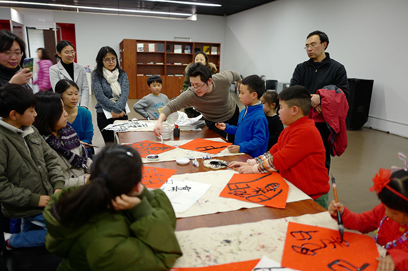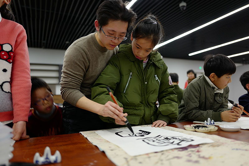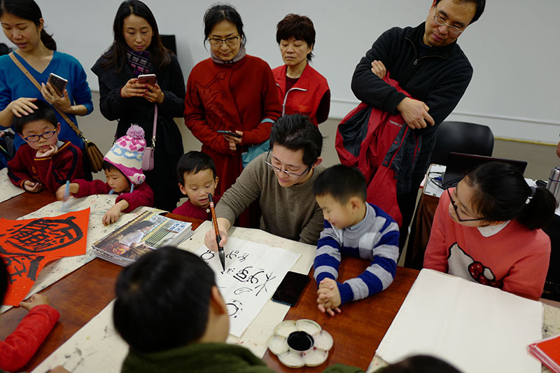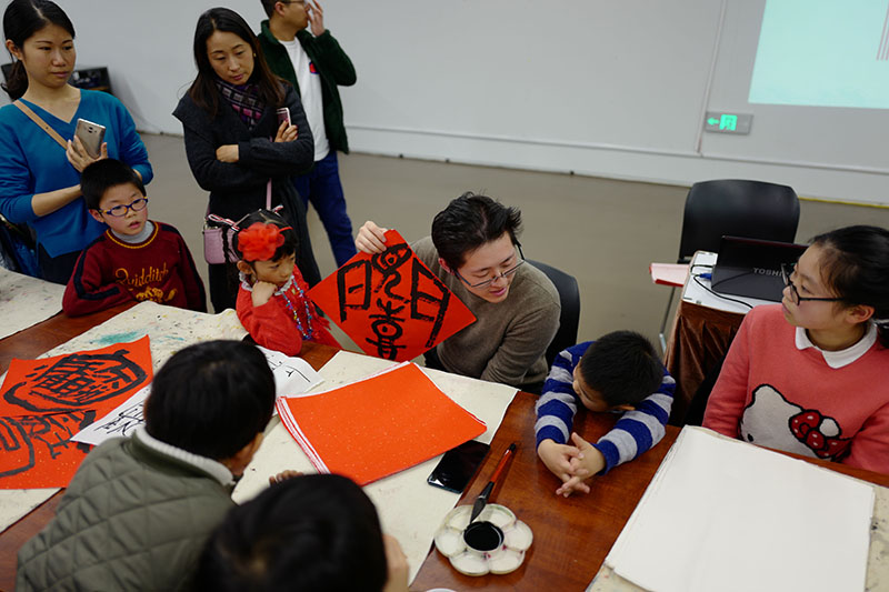 2019年2月10日下午,大无限艺术学校副校长吴叶舟,在中华艺术宫为书法爱好者上了一堂名为“了解汉字·重构汉字——书法合体字书写体验课”。