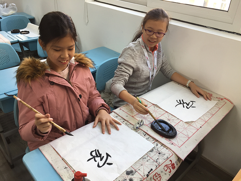 期间,周老师介绍了笔、墨、纸、砚的基础知识、讲解了中国古文字的演变过程,学生们通过一个多小时的练习,基本掌握了毛笔的运笔方法,并每人完成了一件题为《家》的作品,喜悦地带回了新加坡。