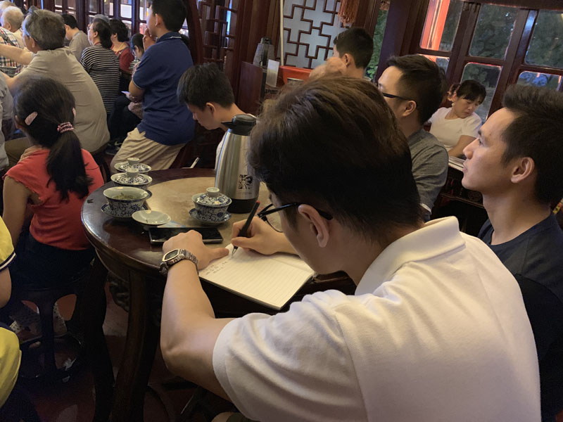 2019年6月27日晚上7:00,一场由吴寒松主讲的“汉字中的东方智慧”专题讲座在豫园九曲桥湖心亭茶楼举行。