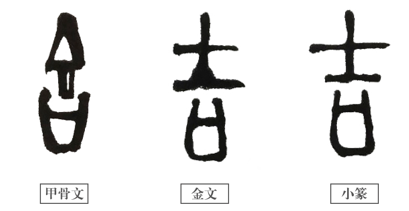 “吉祥如意”的“吉”字,是一个会意字。甲骨文上部为兵器,下部为装兵器的器物,意为“珍爱”的宝物,也可称之为“宝爱”。古人认为兵器存放于器物之中,没有使用,即为“吉”,所以引申为“吉利”。