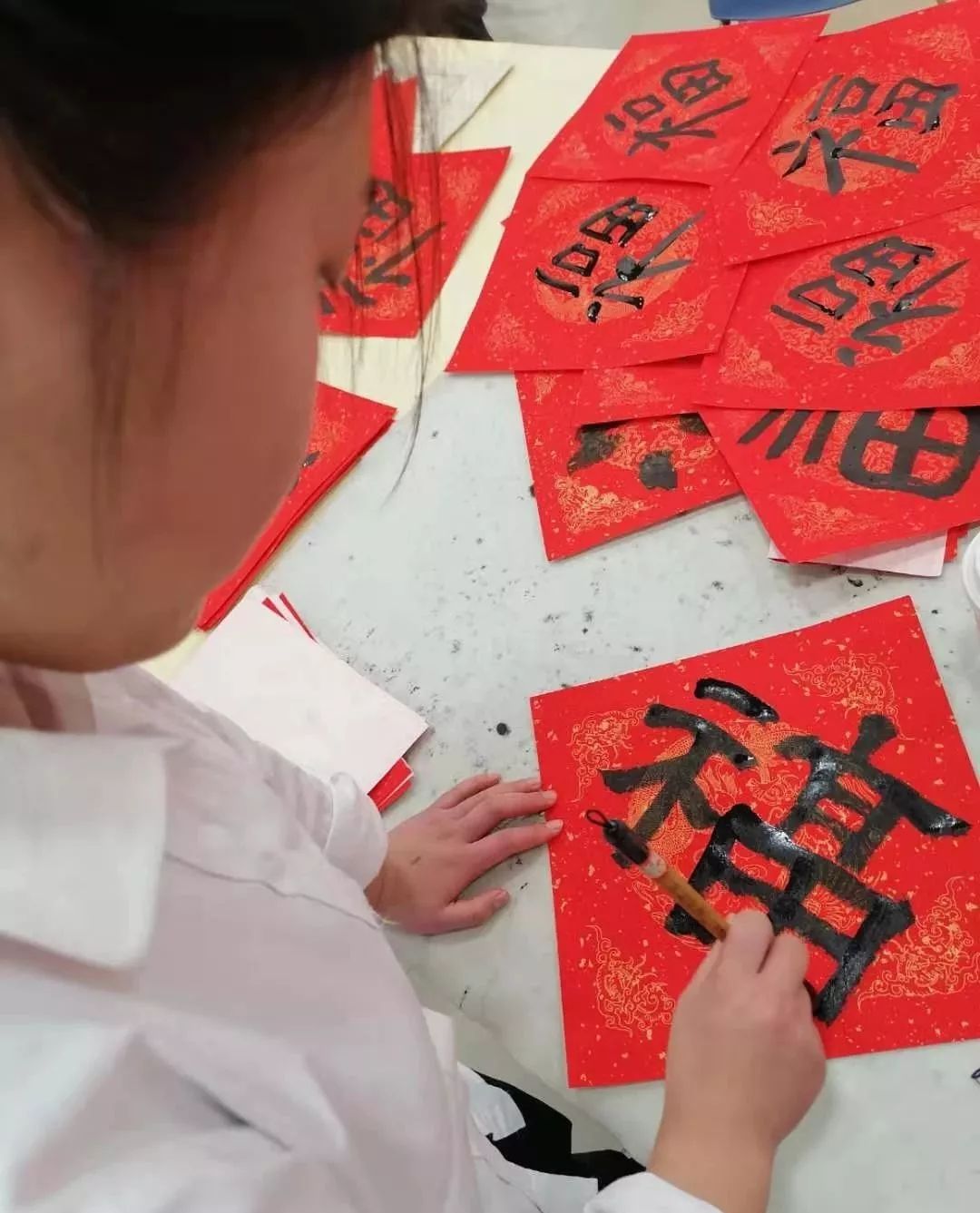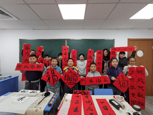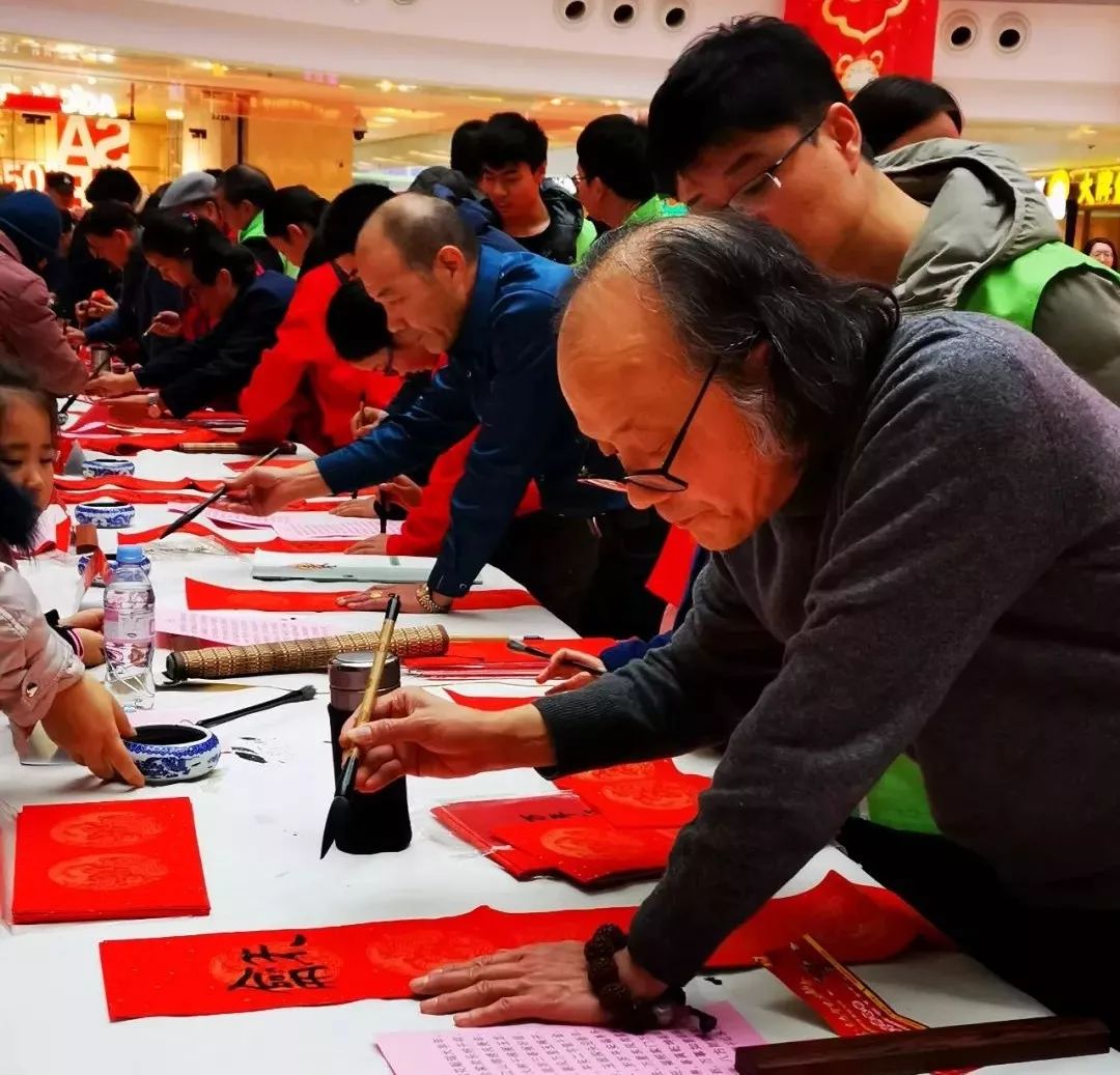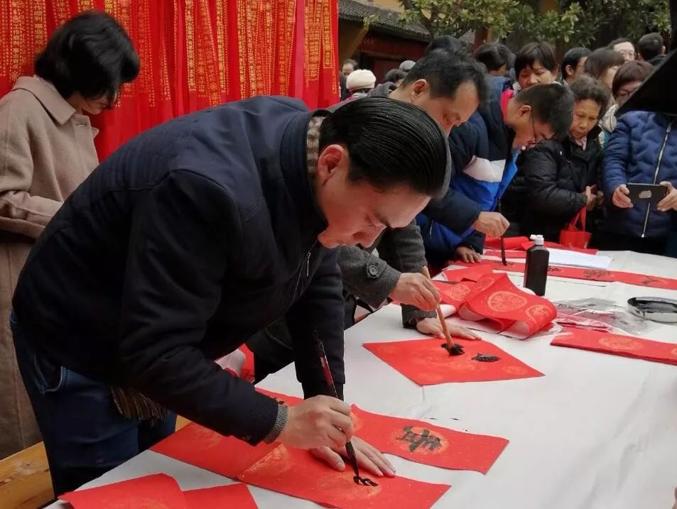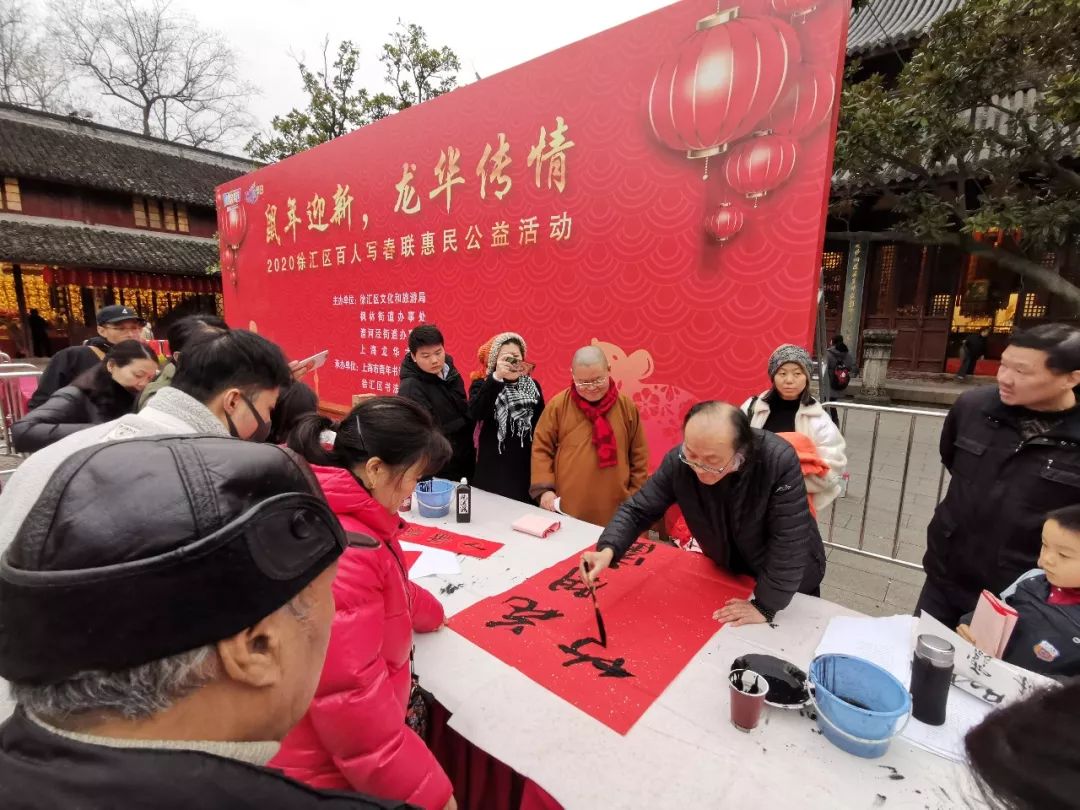 教师参加龙华寺写春联活动