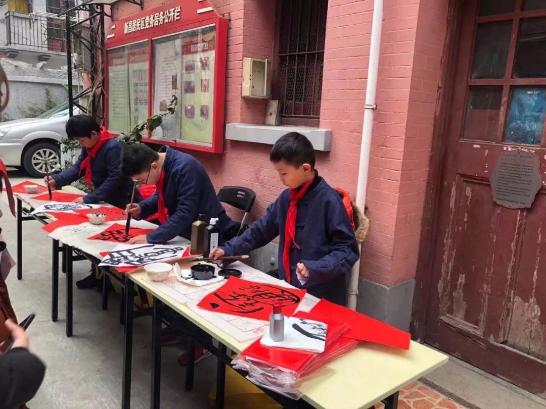 侯冠池、颜锦浩、蔡文昶为南京东路街道居民写福送春联