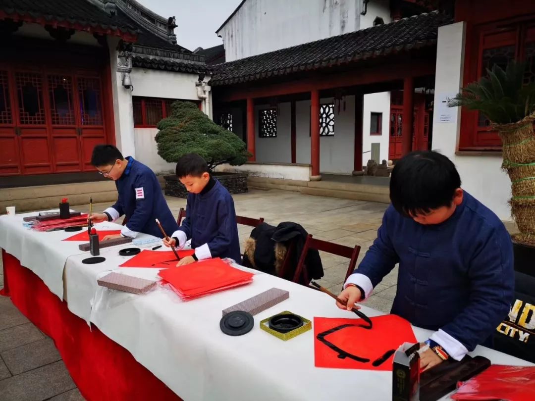 侯冠池、颜锦浩、蔡文昶在文庙参加春联大会