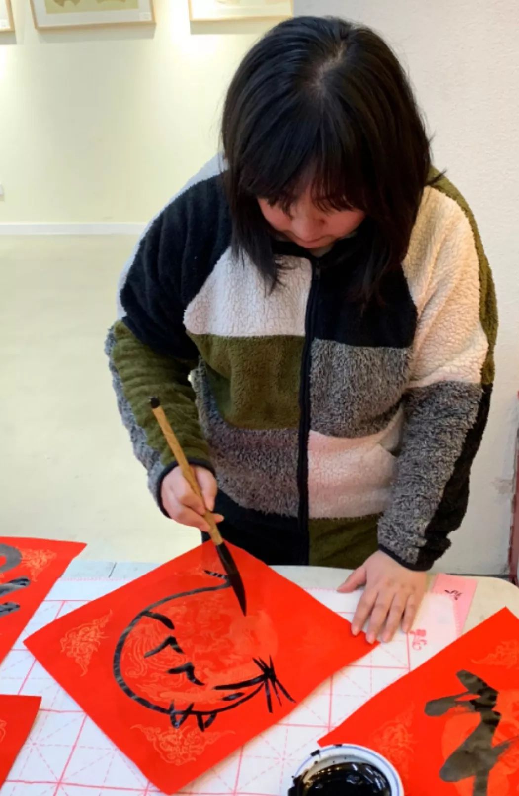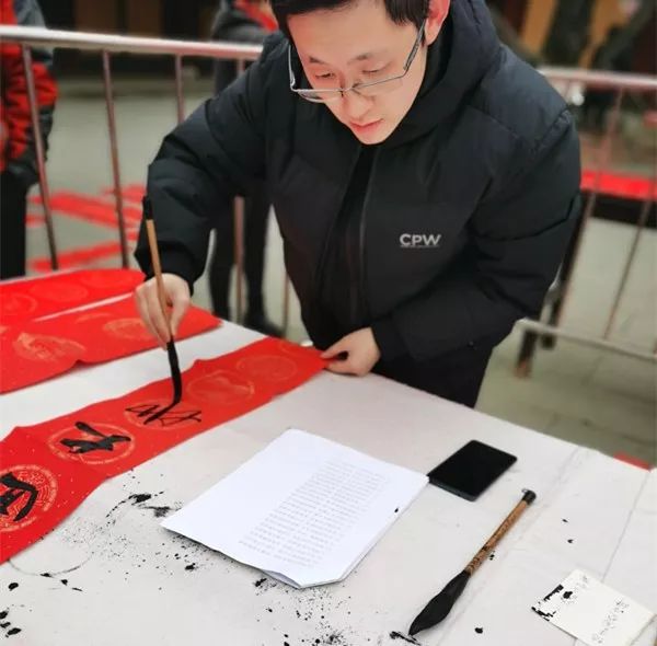 周文婕在永安百货送福写春联