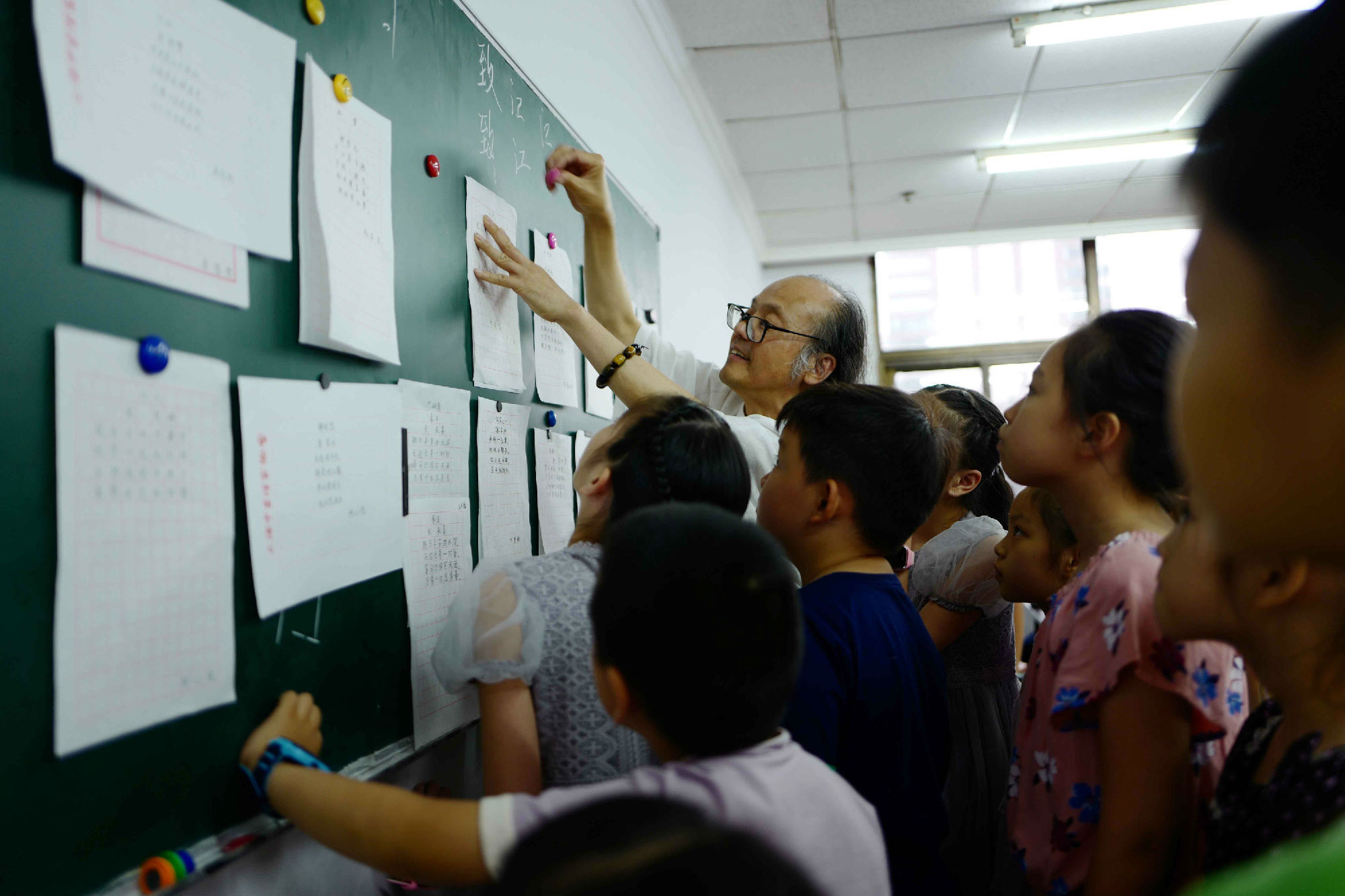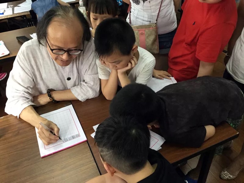 吴寒松正在为学龄前学员辅导入门法