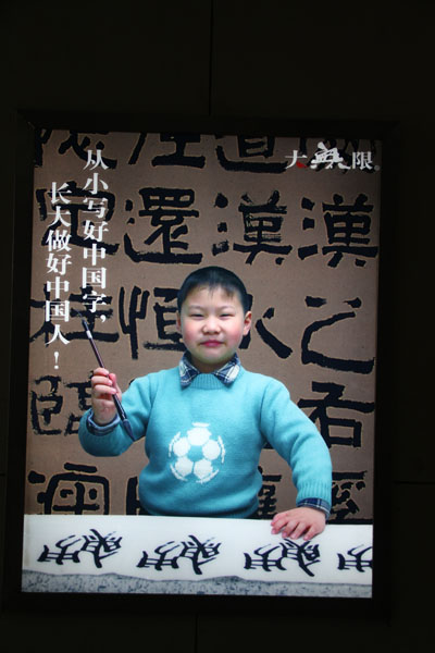 今年才8岁的肖天硕,从2006年起在大无限艺术学校学习书法,聪慧、勤奋过人,敏于思考、善于临摹,每日必练,并在其祖父的辅导下,对书法导师的教学方法和理念转化为日常的家庭引导。因此,书法技能进步速度惊人。从2011年至2013年三年间,书法作品参加并入展国内外7项,荣获过铜、银、金等各类奖项。去年,他的一件“莺歌燕舞”篆书作品,在上海市“六·一展”中荣获优秀奖。此后,这件作品又在首届上海书法节上亮相,并再次获得优秀奖。(偱之)