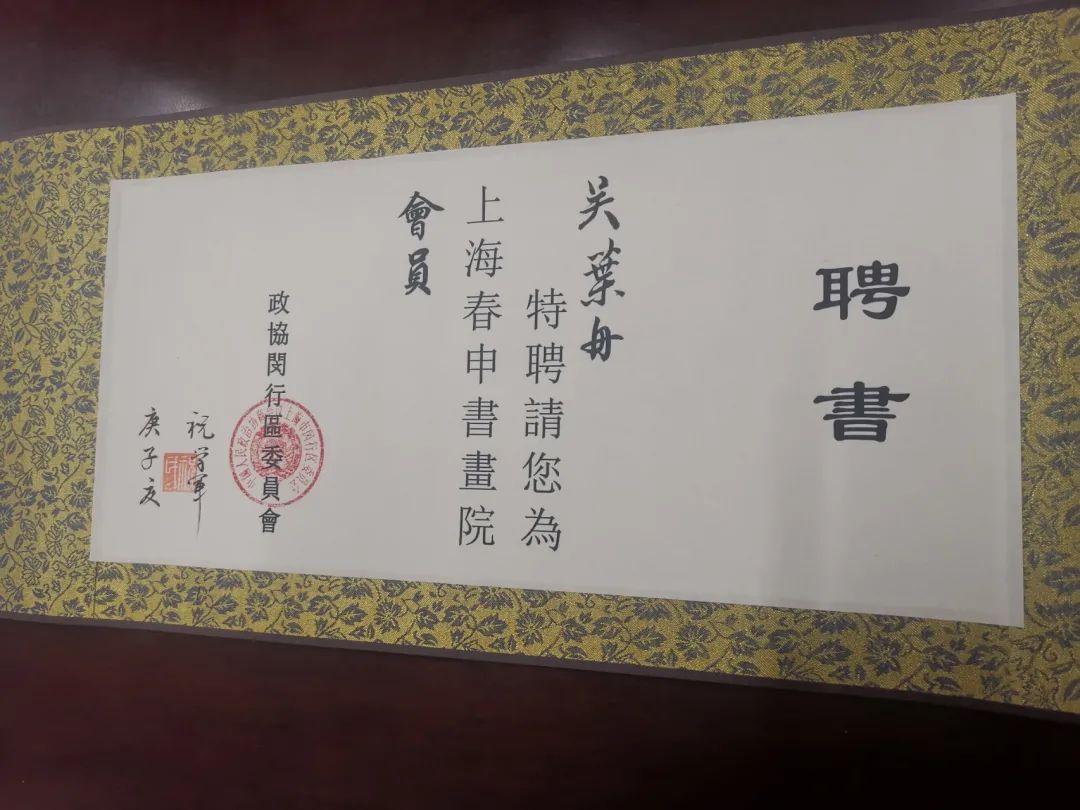 吴叶舟被聘为上海春申书画院会员