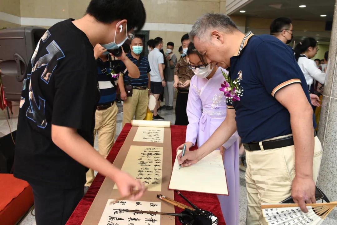 第十一届全国人大常委、第十二届上海市人大常委会主任龚学平,上海现代服务业联合会会长,原上海市人大常委会副主任、民盟中央副主席、十一、十二届全国政协常委郑惠强,上海市书法家协会名誉主席、上海中国书法院院长、大无限艺术学校资深艺术顾问周志高、上海图书馆党委书记楼巍,以及上海市书法家协会、上海民盟书画院、徐汇区、闵行区书协的领导、上海市民盟市委、上海市黄浦区教育局以及大无限艺术学校协作单位的领导、大无限艺术学校顾问团的书画家和企业界、文化界、新闻界的朋友近千人参加了开幕式。