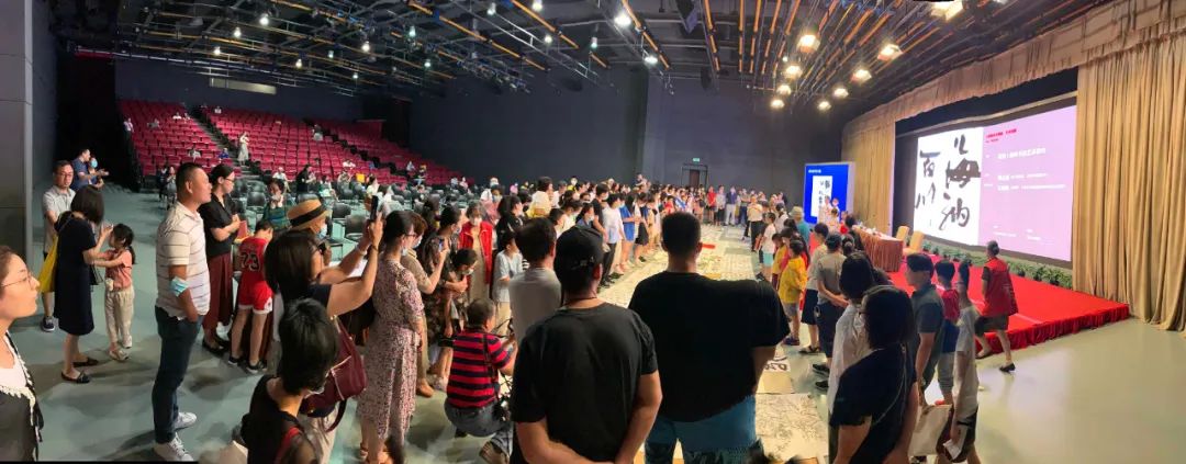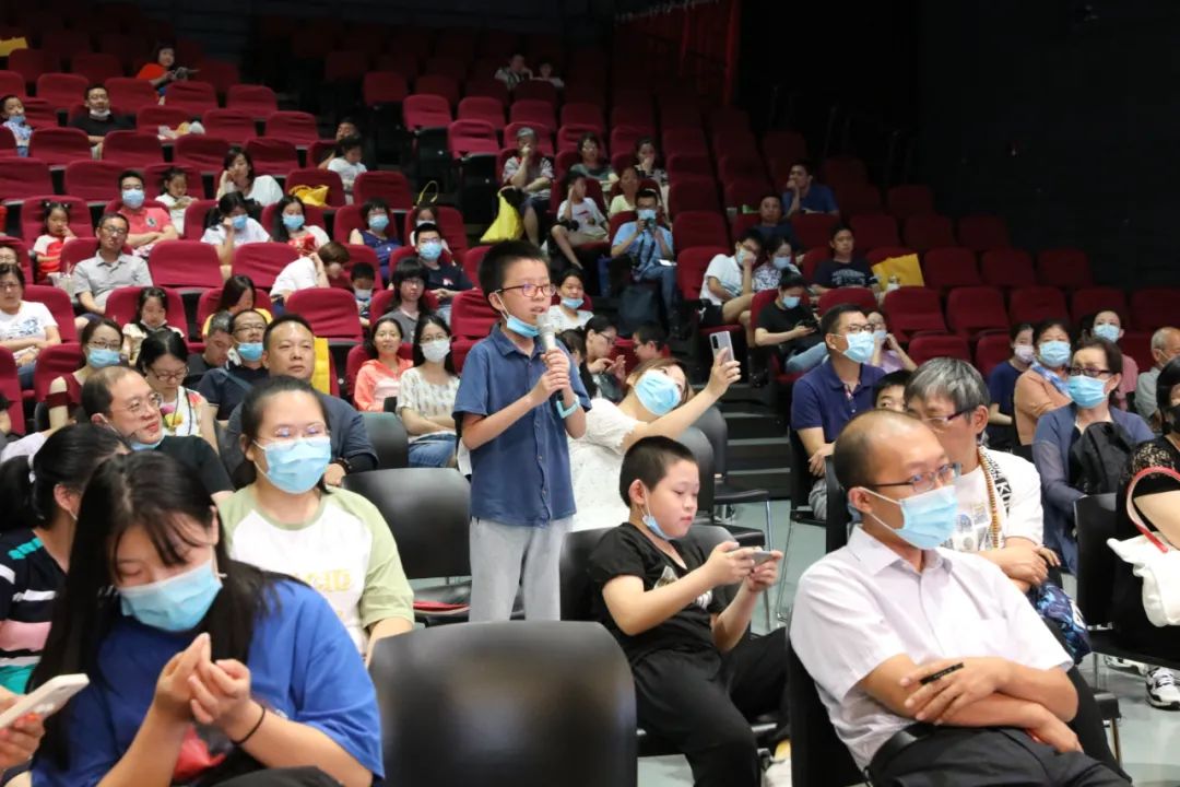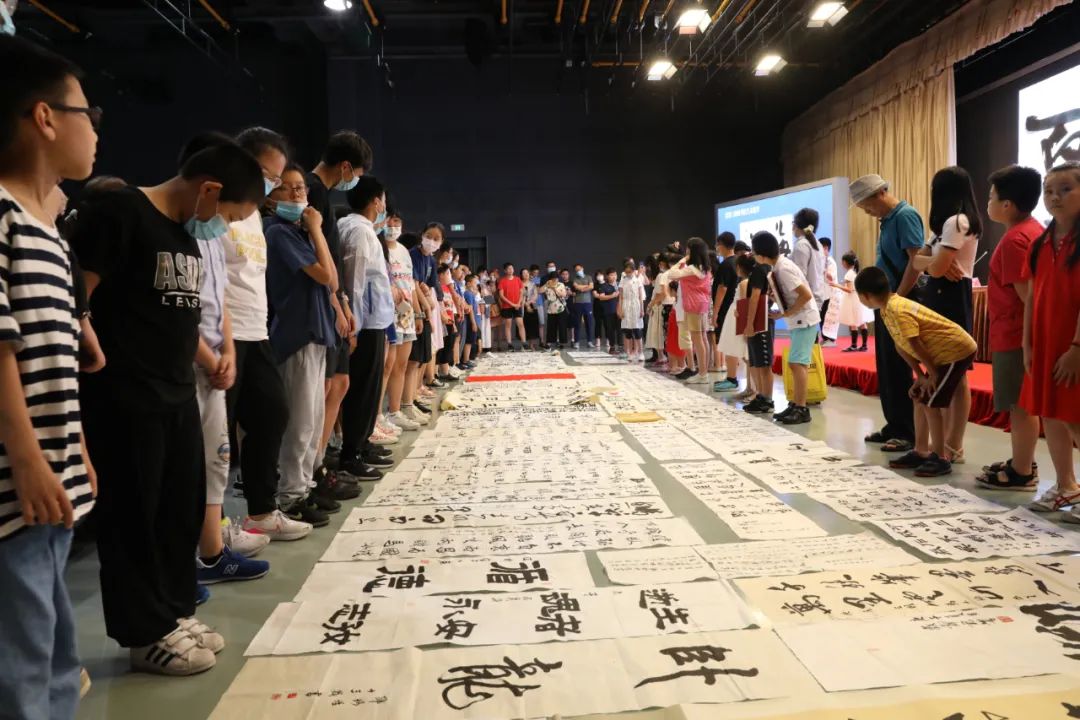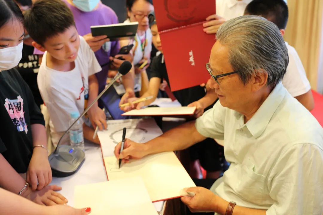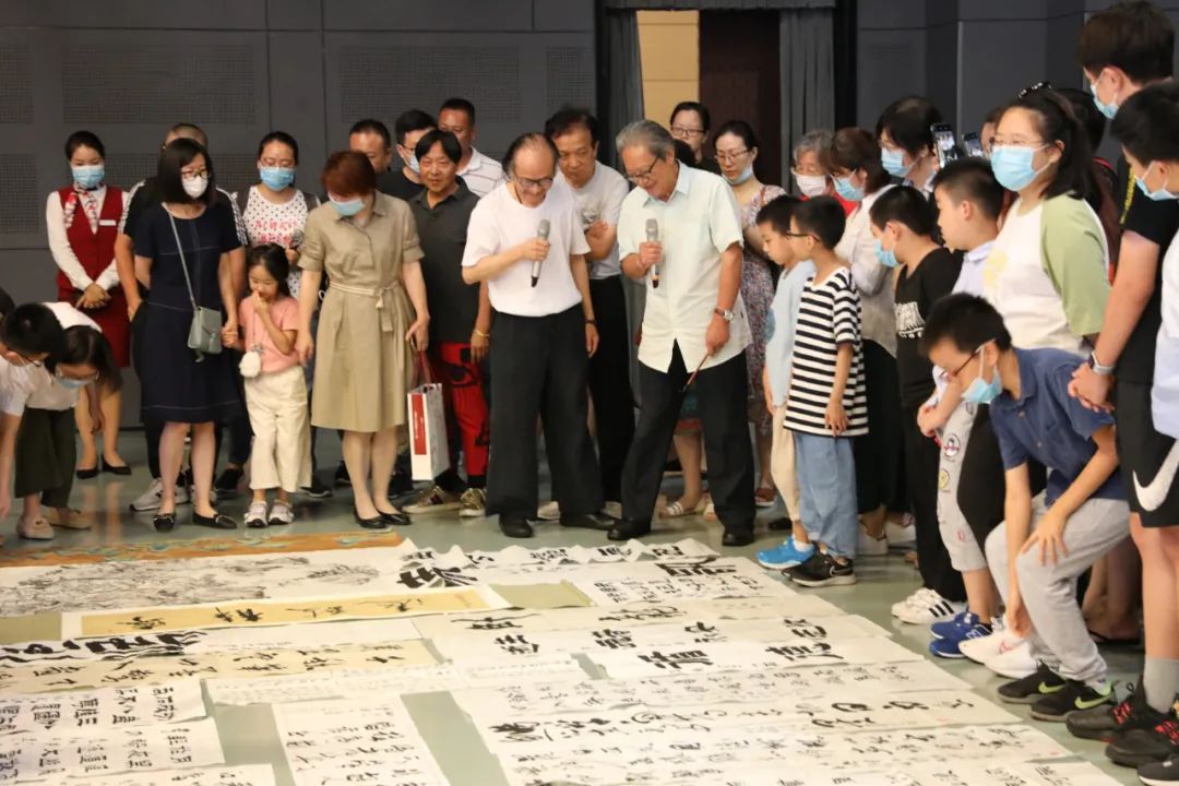 讲座中,周主席不仅在互动环节一一回答大家的提问。还在讲座结束时,走下讲台,为正在热爱书法学习的学生点评习作,并与所有参与听讲的中小学生合影留念。