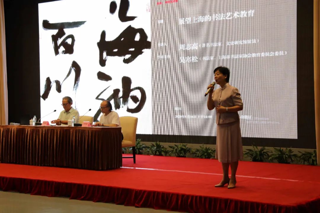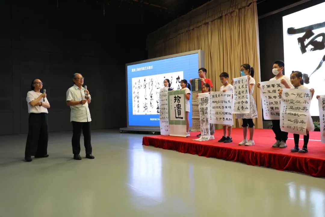 民盟上海市委专职副主委、上海市政协常委杨德妹首先致辞,她说:书法教育很重要,是传承中华传统文化的基础性工程,对提升青少年的审美情趣和修养至关重要,对健全孩子们的品质和人格具有广泛的意义。