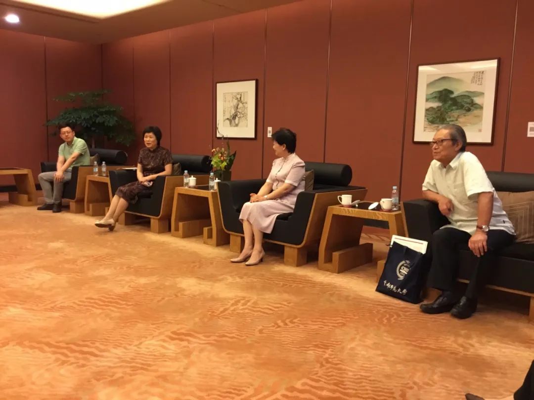 讲座开始前,中华艺术宫党委书记邓军和馆长沈捷会见了民盟上海市委专职副主委杨德妹和书法家协会名誉主席周志高。