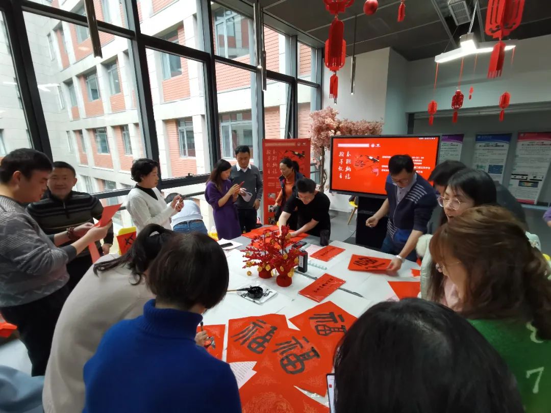 随后,四位书法家现场挥毫泼墨,写下火红的“福”字和一幅幅春联,前来领取春联和“福”字的师生络绎不绝,三个多小时,近百幅承载着对未来美好期许的春联和带着墨香“福”字送出。“乾坤添春色,日月增光辉”、“夜雨书声静,春风墨韵浓”、“五湖四海皆春色,万水千山尽得辉”、“迎新春江山锦绣,辞旧岁事泰辉煌”……