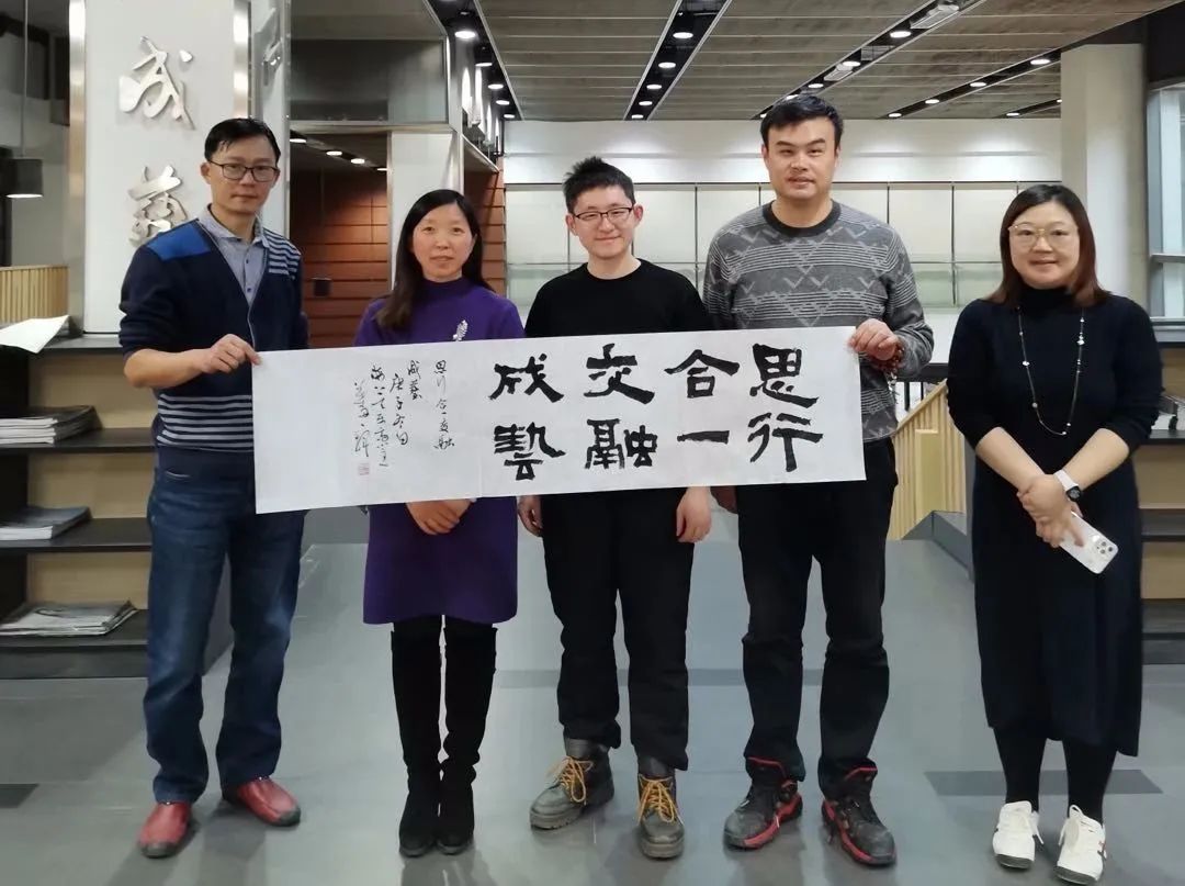 活动最后,吴叶舟为学院题写了 “思行合一,交融成艺” 的院训赠与该学院收藏。