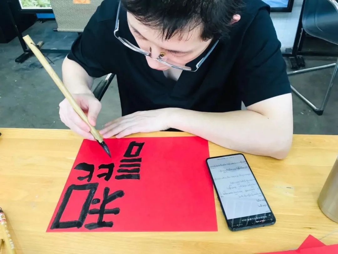 2019年新中国华诞70周年,大无限艺术学校副校长、青年书法家吴叶舟参与由文化和旅游部、教育部、人力资源社会保障部主办,上海大学上海美术学院和上海公共艺术协同创新中心(PACC)共同承办的“中国非物质文化遗产传承人群研修研习培训计划”(青海果洛研修班)跨界创作,德昂洒智藏书法技艺传承人与吴叶舟共同创作56幅书法作品《我和我的祖国》系列,吸引了大家的目光。