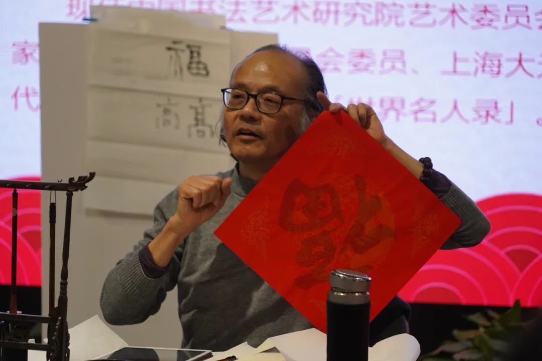 五位学院以扎实的基本功,当场书写各种书体的“福”字,赢得了大家的好评。活动开始前,吴校长还特地分别向大家介绍了出席今天挥毫活动五位学员。