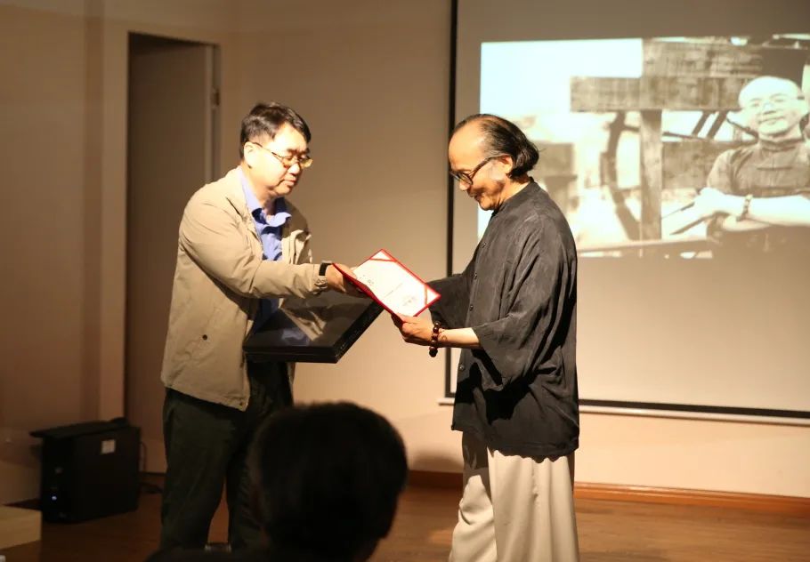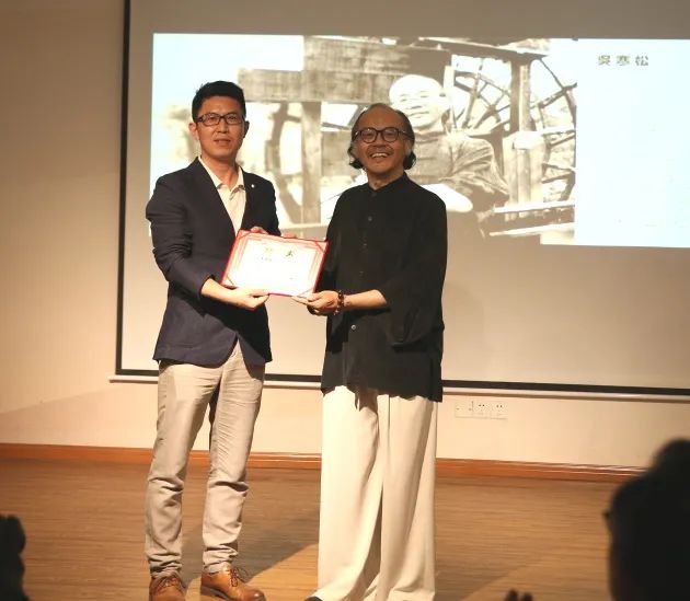 ??近20多年来,吴寒松先生在书法教学领域硕果累累,不仅为书法界培养了一批后继人才,而且对书法教学的理论研究作出有益的贡献,出版专著和发表专业论文20余篇。最近,又欣然接受上海建桥艺术设计学院的聘请,成为该院的特聘教授。??上海建桥艺术设计学院院长葛洪波先生为吴寒松先生颁发聘书。
