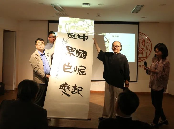 ??下午,展览主办方还举行了"书法创作心得谈"为专题的讲座和研讨,闵行区书法家协会副主席兼秘书长黄世钊和闵行区书法家协会古美分会会长瞿志豪两位著名艺术家,作为讲座和研讨的特邀嘉宾出席,做了非常精彩的发言,并回答了与会者的提问。