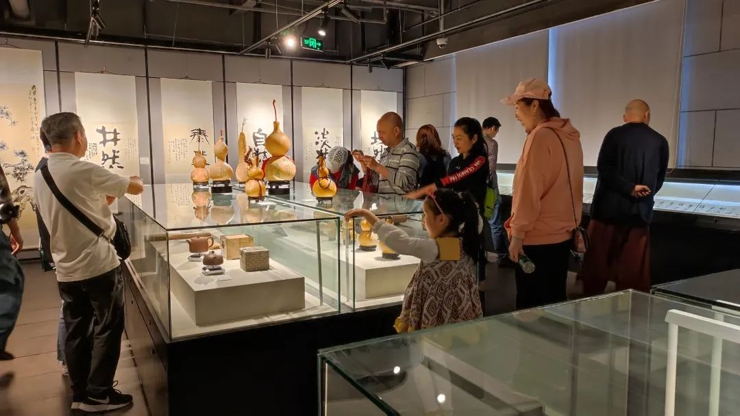 ??民盟上海市委副主委杨德妹讲话,她非常开心的看到吴老师的展品不仅有书法还有绘画、瓷器、紫砂、葫芦等艺术作品种类丰富,让人大饱眼福。对主办单位和承办单位提供了如此的一个学习和分享的平台表示感谢,并祝展览圆满成功。??