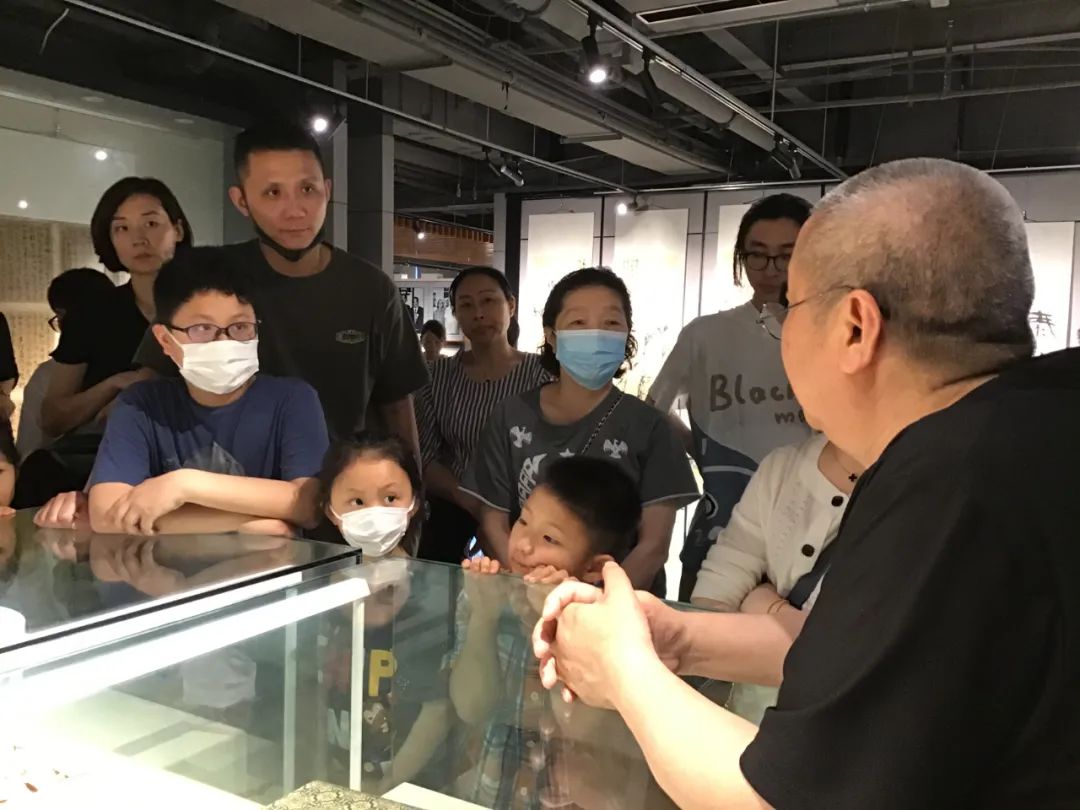 参观之后,徐仲偶教授还为大无限艺术学校的书画班学员上了一堂生动的艺术课。他从“书法在传统文化艺术中的地位”和“青少年学习书法的益处”等角度较为详细地阐述了自己的看法。深入浅出、有论述有实践还常常举例,生动无比的讲课,赢得了在场学员及家长的阵阵掌声。