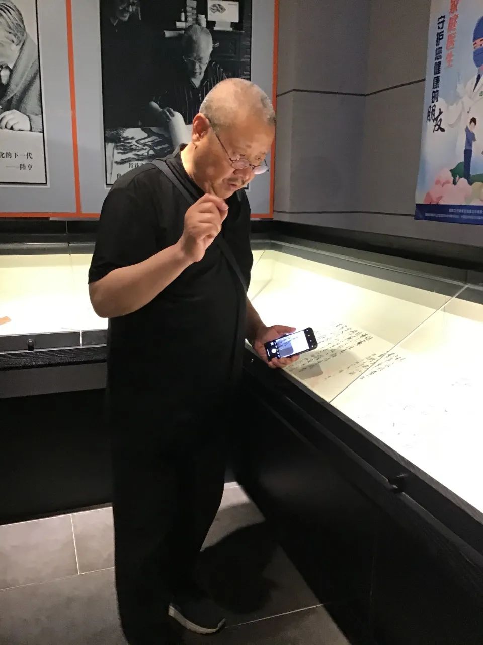 5月16日上午,中央美术学院教授、中央美术学院城市设计学院前院长,宁波大学潘天寿建筑与艺术设计学院院长徐仲偶和上海建桥学院艺术设计学院院长葛洪波来到展厅,参观了"韵古意美循之书画艺术展。徐教授一行在吴寒松陪同下,认真观摩了每一件作品,当徐教授走到一件《历代画论选读》的草书册页前,认真地对作品作了评论和谈了自己的看法。