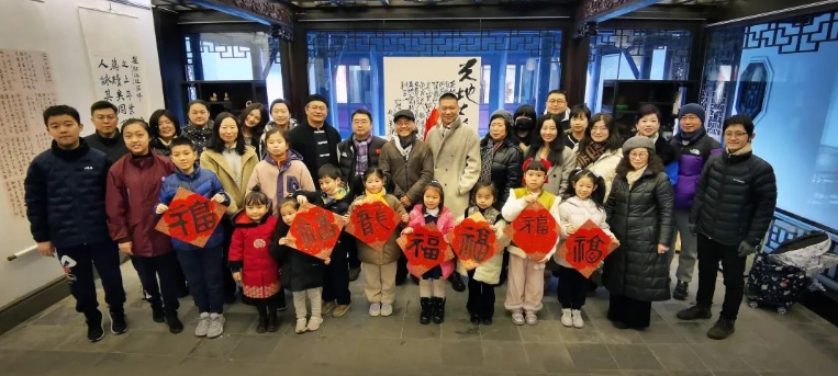 四天的活动,精彩纷呈。学员们互相交流学习心得,探讨春联创作的体会。还有诗人、学员当场赋诗,为金泽古镇量身定制春联的内容。工艺社为每天的活动安排了参观的时间,还安排优秀的导览员给大家做了精心的讲解,让学员和家长了解了许多收藏的知识。使所有参与活动的师生和家长收获满满。每当活动出现高潮时,全体师生和家长都会与工艺社梅冰巧社长和两位得力的管家马宁先生和王黎先生合影留念。
