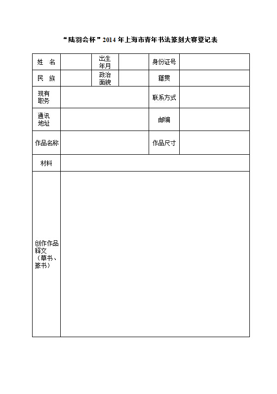 (4)作品背面右下角铅笔工整注明作者真实姓名、年龄、性别、联系电话(手机)、详细通讯地址。随稿须附作品登记表一份,表格可至上海书协网站www.shanghaishuxie.cn下载。