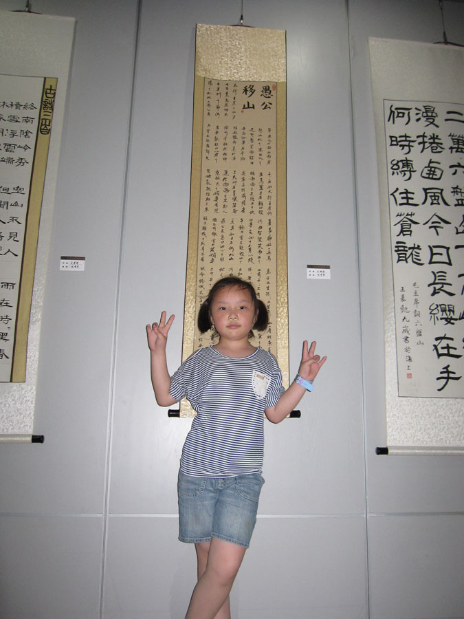 学员陆亦岳在自己作品前留影