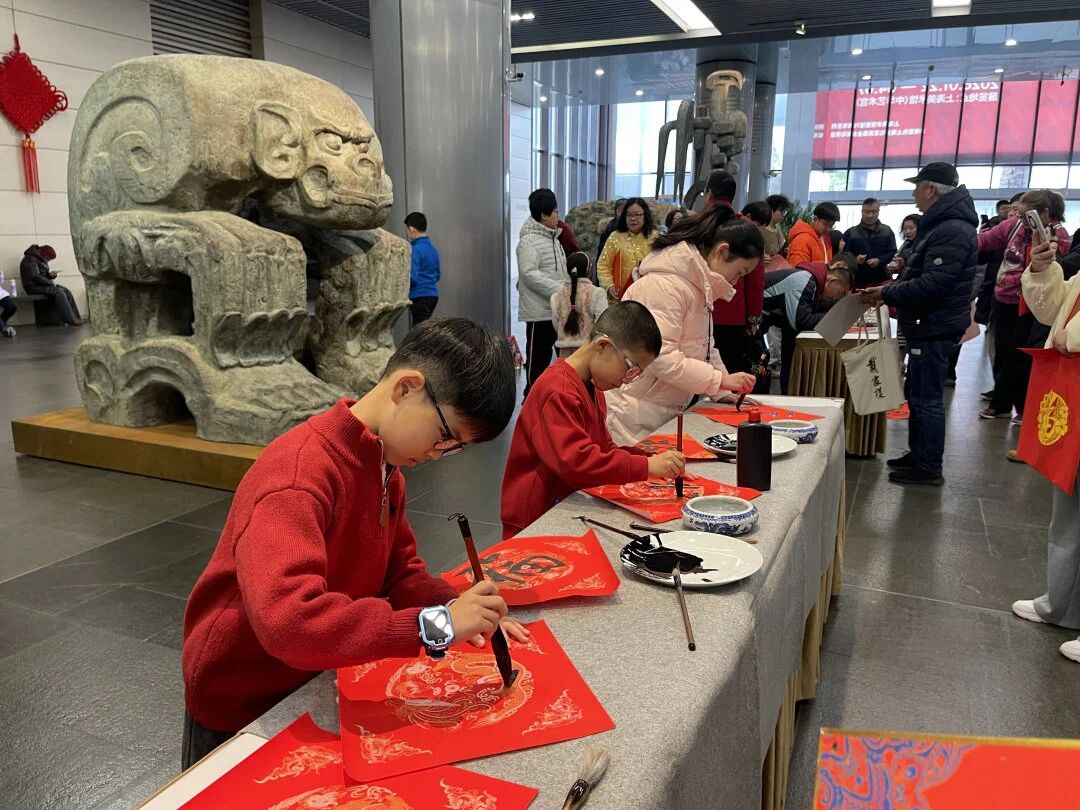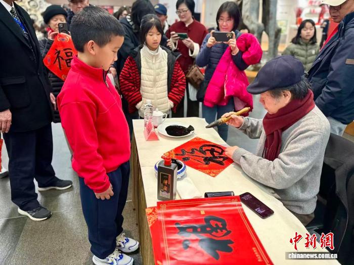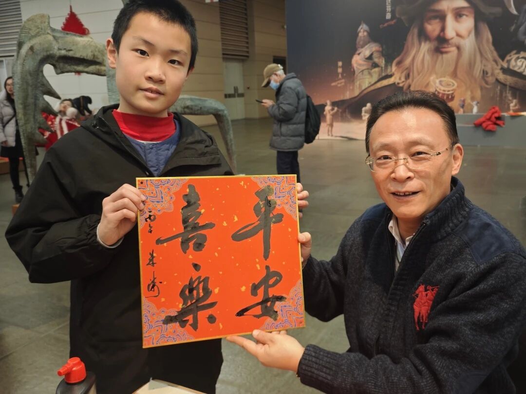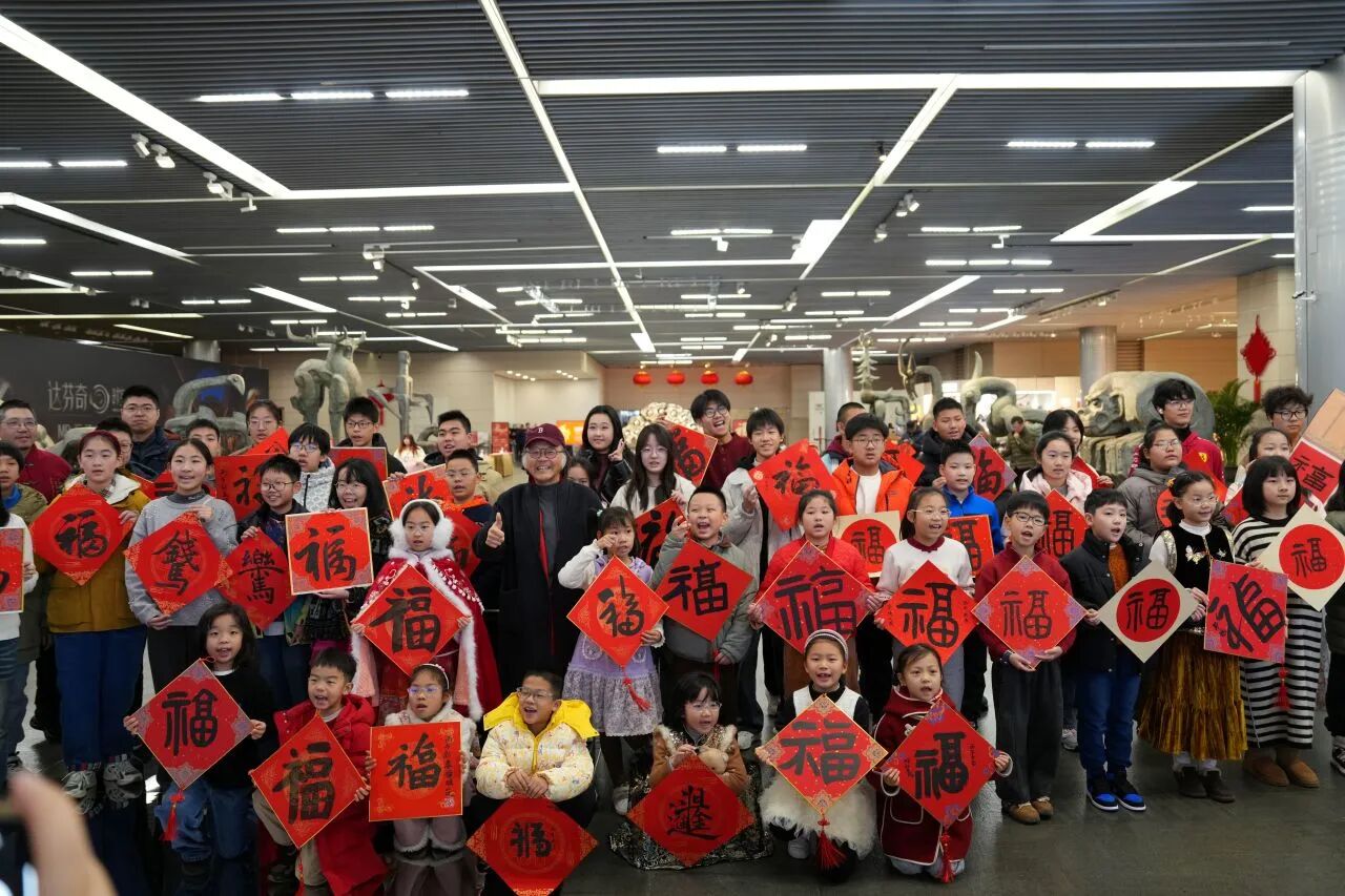 席间,孩子们难掩对名家笔墨的喜爱,纷纷围拢到各位书法家身边。递上红纸,一句新年大吉,我也想求个福字,可以吗?书法名家们欣然应允,俯身挥毫间,还不忘向孩子们讲解笔法要领,孩子们听得认真,看得入迷。稚子与名家,以笔墨结缘,以福字传情,现场暖意融融。