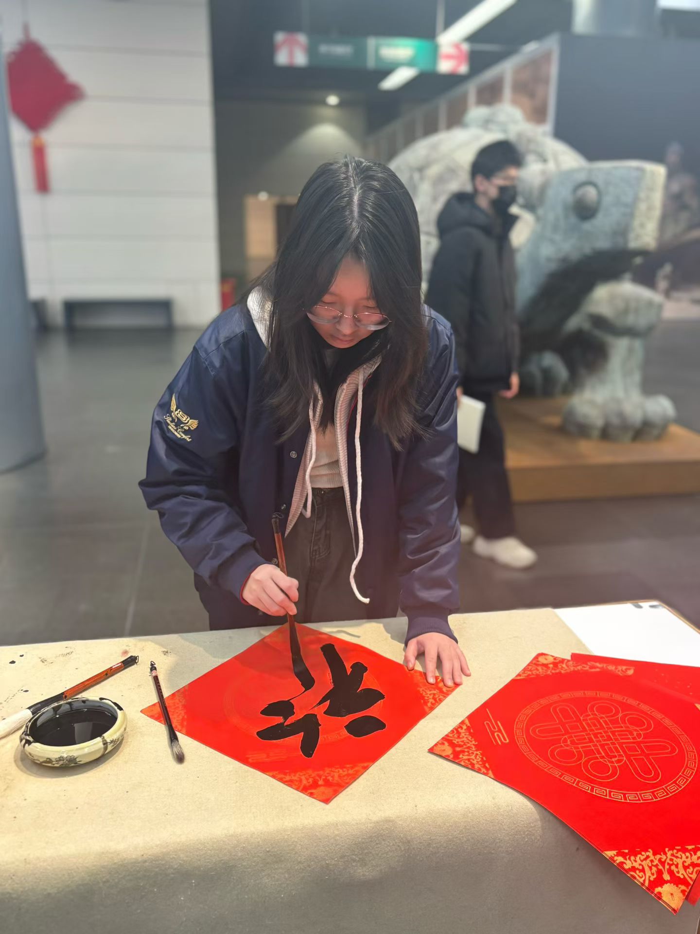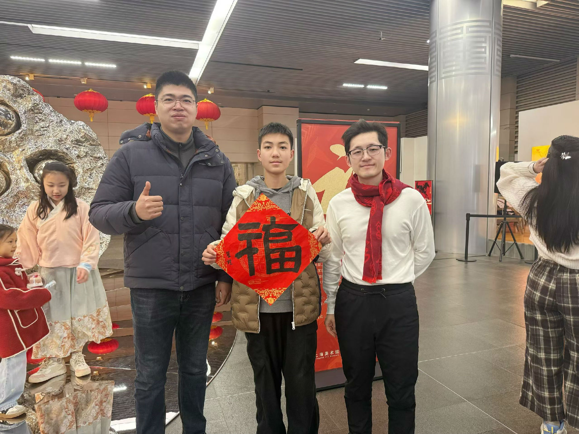 2026年2月17日,大年初一,上海美术馆(中华艺术宫)内年味浓浓,墨香阵阵。大无限书院受邀,携手师生参与“艺马当先——来上美过大年”新春系列活动,以笔墨贺新岁,以书香润年味,为市民送上真挚的马年祝福。