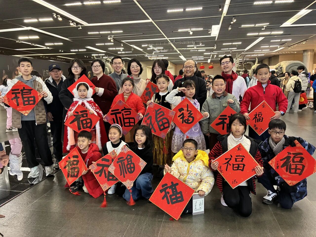 正值上海美术馆建馆七十周年之际,馆方特邀70位小朋友来到现场,与书法家携手共书福韵。大无限书院的学员们一笔一画认真落墨,用童真的笔触传递新春祈愿,用稚嫩的墨痕致敬传统书法。与名家同台挥毫,翰墨共迎新春,成为礼堂里最动人的风景。