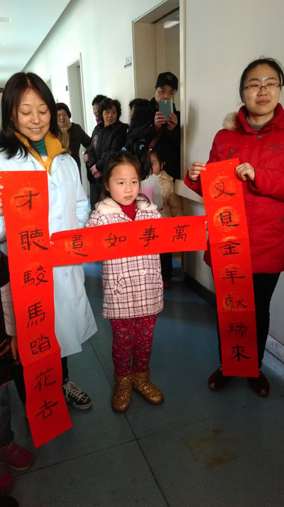 近日,大无限艺术学校学员朱恺昕在光花园居委会组织的送温暖活动中,前往了位于罗城路的长桥街道敬老院送温暖送欢笑送春联。朱恺昕向敬老院赠送了自己写的十余副寓意吉祥的春联,还与小伙伴们一同为爷爷奶奶们合唱了《外婆的澎湖湾》、《可爱的家》等多首曲目,用自己的方式表达了一片爱心!