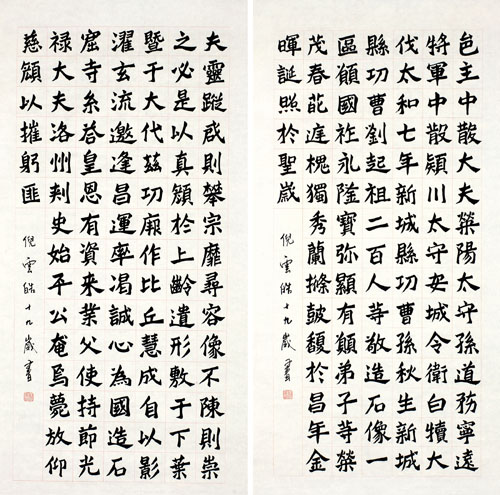 6岁起追随吴寒松先生开始学习书法,先后学完《秦石鼓文》,《汉张迁碑》、《米芾蜀素帖》和《杨大眼造像记》、《始平公造像记》。