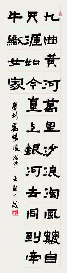 现就读于上海市闵行区实验小学五年级,5岁起由大无限艺术学校李吉老师启蒙,后师从于大无限艺术学校校长吴寒松学习书法,由《汉·张迁碑》入门,继而学习王铎《赠汤若望诗》,现已取得上海市书法家协会少儿毛笔8级证书。