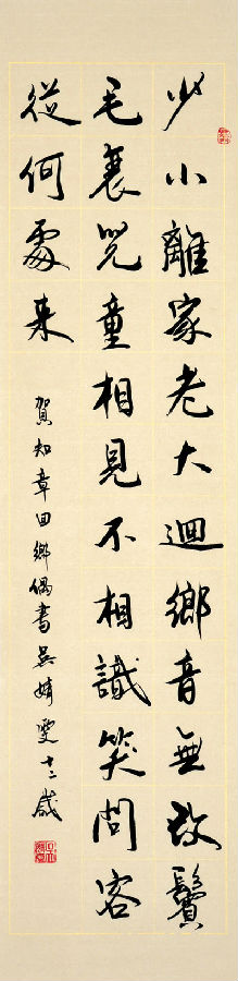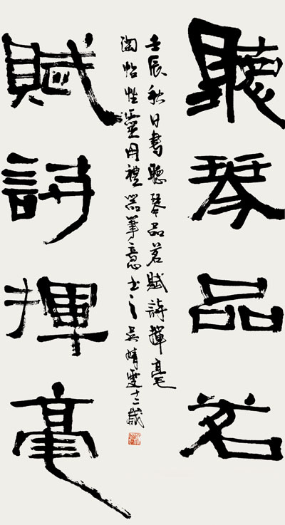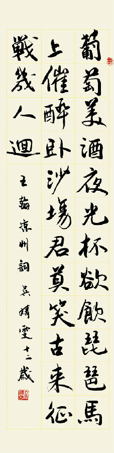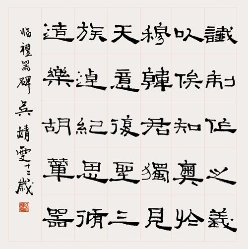 2006年开始在上海大无限艺术学校学习书法,由《汉礼器碑》入门,随后还学习了《米芾蜀素贴》。说起学习书法的初衷是希望我长大后成为一个贤良淑德的女孩,希望我能像我的名字那样安静文气。想不到在经历了酸甜苦辣的书法学习中多次获得了荣誉,从此爱上了书法……