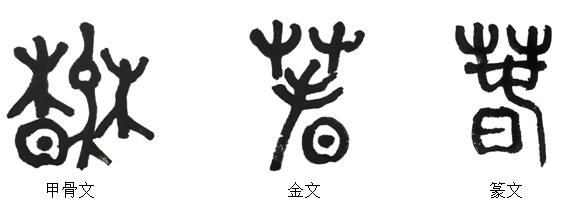 许慎在《说文解字注》中说:“春,推也”。“春出也,万物之出也”。小篆由“日、草、屯”三部分组成。意为到了春天,万物“得时而生长”。“屯”,象草木之初生状。“屯”是“春”字读音的由来。既会意,又形声也。徐梦嘉先生认为:甲骨文“春”是一幅报春图(如图)。“其构形是暖日在草木间,鸟儿于林中飞出”,这就是“春”的本意。
